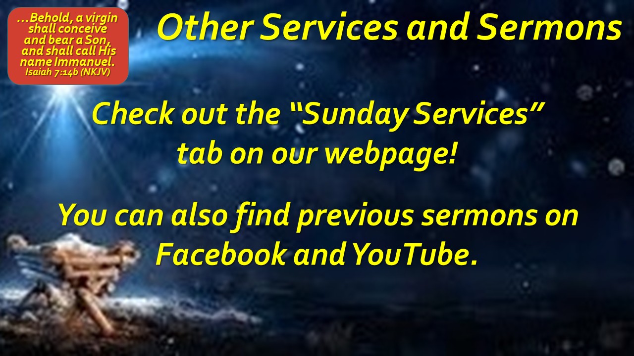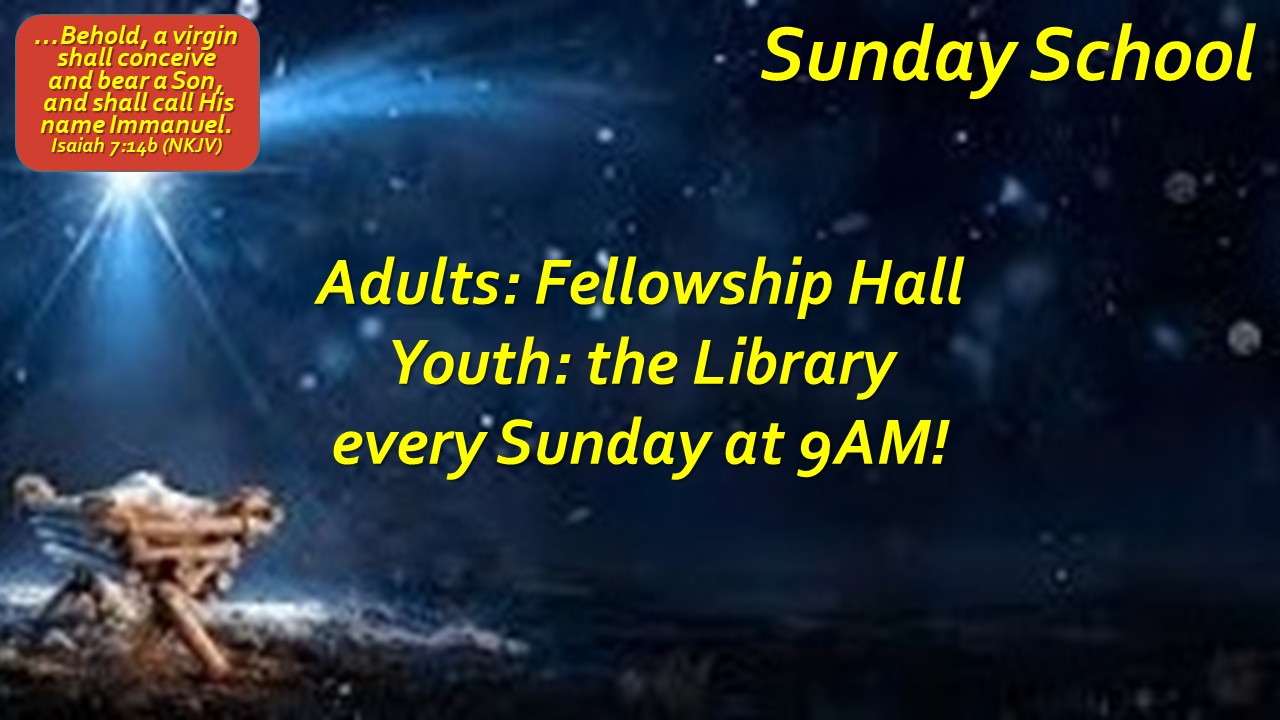 Service Times: Sunday School 9:00 a.m. Worship 10:00 a.m.