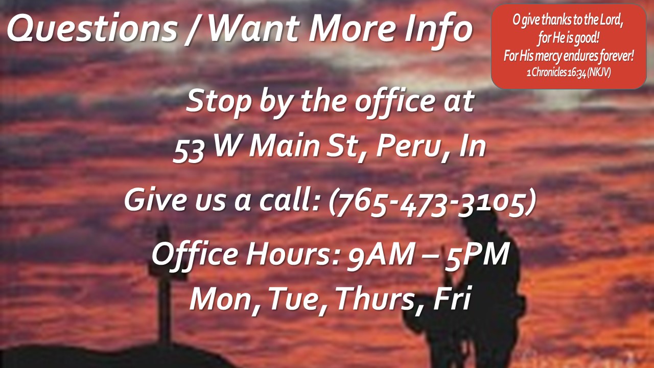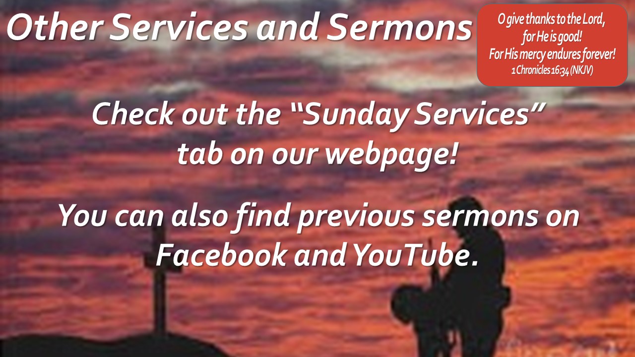 Service Times: Sunday School 9:00 a.m. Worship 10:00 a.m.